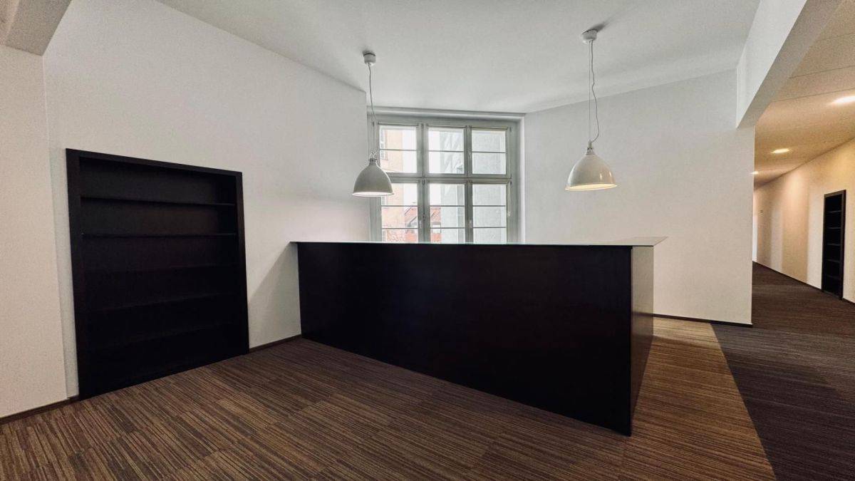 Biuro w układzie gabinetowym od razu do wejścia.