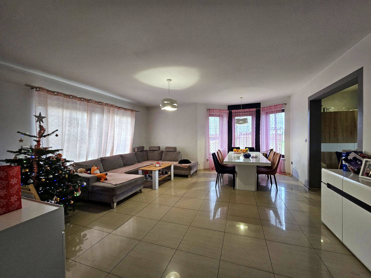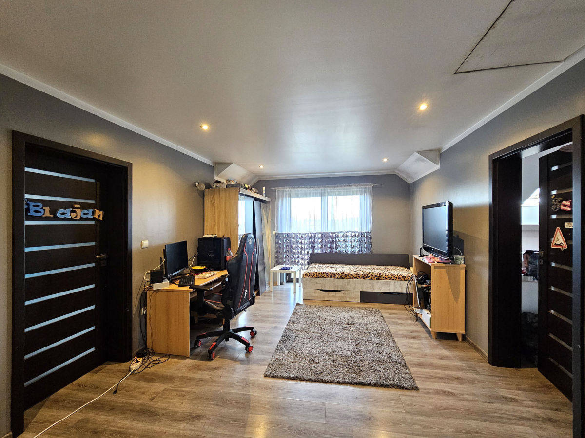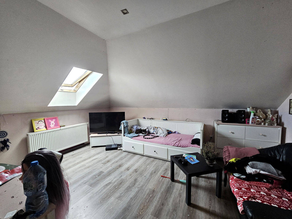 Budynek wymaga jeszcze niektórych prac wykończeniowych, ale jest już zamieszkany i użytkowany. Do wykończenia są przede wszystkim łazienki, część mieszkalna do odświeżenia. Sporo pomieszczeń, na samym parterze poza salonem z aneksem kuchennym są dwa oddzielne pokoje plus łazienka i WC. Na piętrze, poza obszernym hallem, są 3 pokoje sypialne i łazienka.