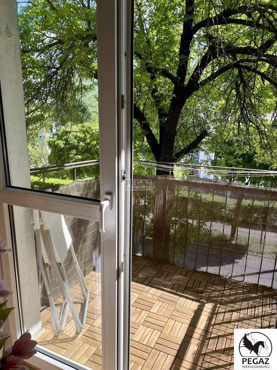 Balkon, dzięki temu, że ulica Mylna w tej części jest spokojna i rosną na niej drzewa - świetnie sprawdził się jako miejsce pracy zdalnej i nauki.