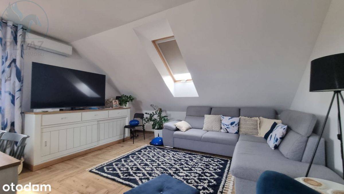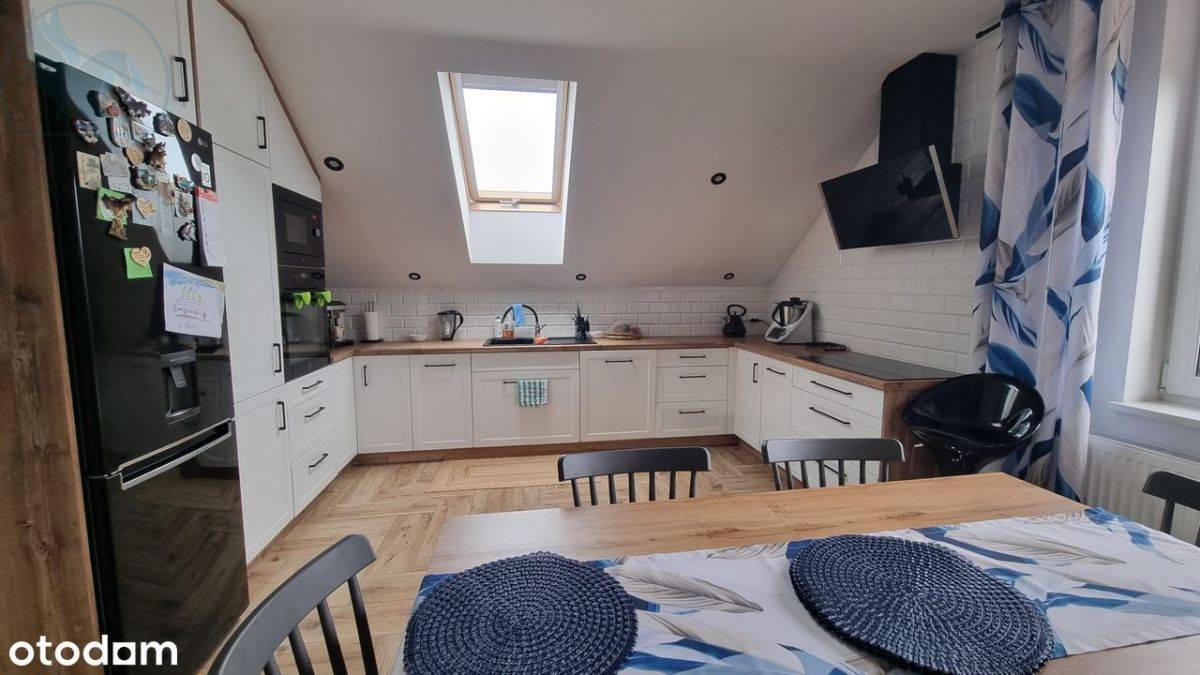 Mieszkanie na poddaszu, wybudowane w 2022 roku, jest w pełni umeblowane i wyposażone.