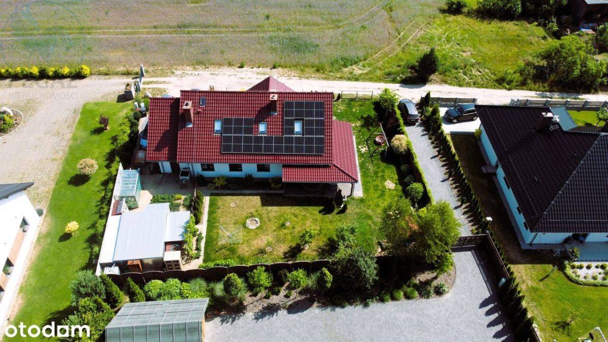 Energię w domu zapewnia instalacja fotowoltaiczna o mocy 8,9 kW, co w obecnych czasach jest nieocenionym atutem, pozwalającym na oszczędności i ekologiczne rozwiązania. Ogrzewanie realizowane jest za pomocą pieca na ekogroszek, z ogrzewaniem podłogowym oraz grzejnikami - zapewnia to ciepło i komfort przez cały rok. Na poddaszu znajduje się klimatyzacja, która zwiększa komfort użytkowania w gorące dni.