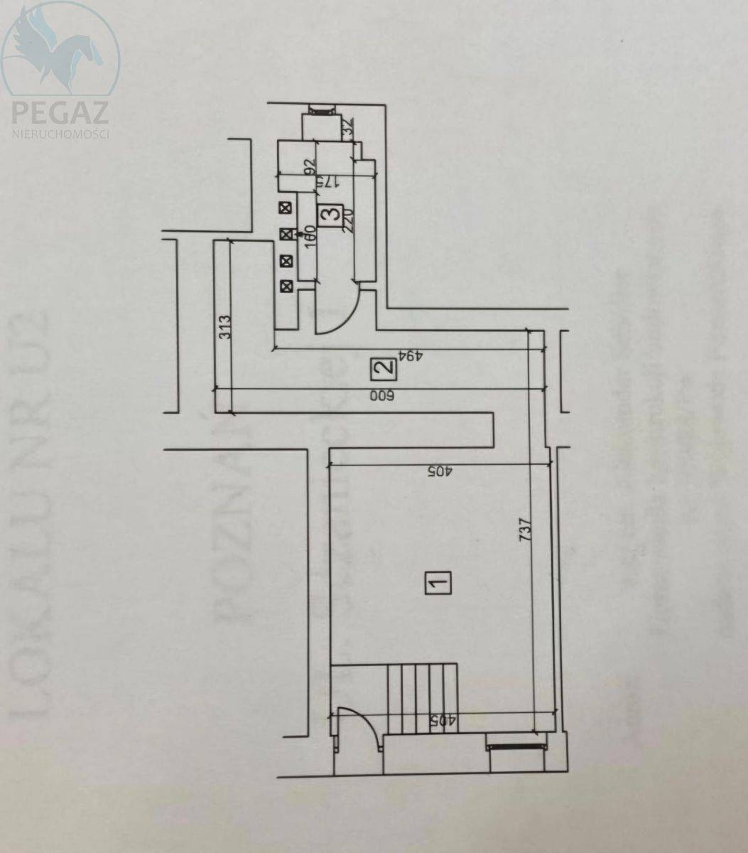W głównej części mamy do dyspozycji salę sprzedaży o powierzchni 21m2, z której jest przejście do zaplecza wraz z łazienką o powierzchni 16m2
