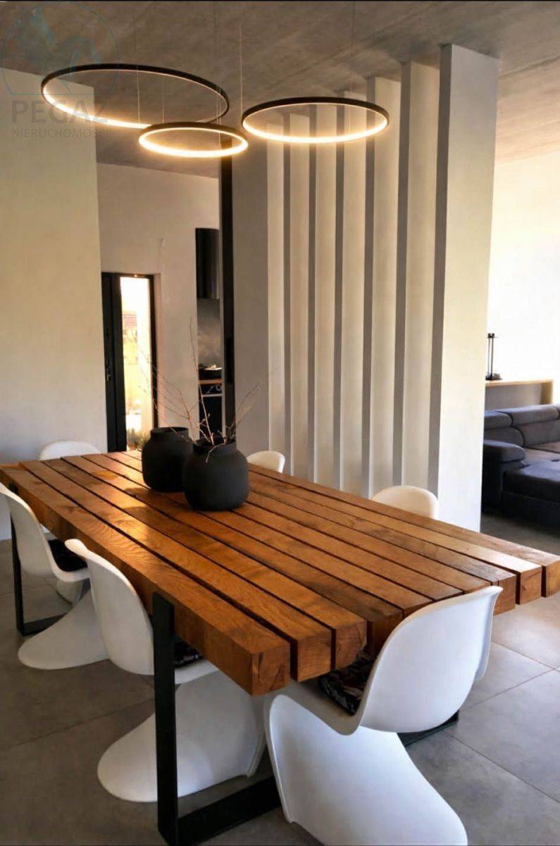 Ten nowoczesny dom został wybudowany w 2020 roku z najwyższej klasy materiałów, m.in. wysokiej jakości bloczków YTONG, gwarantujących trwałość i energooszczędność. Jego powierzchnia użytkowa to przestronne wnętrza, które zachwycają nie tylko funkcjonalnością, ale i gustownym wykończeniem.