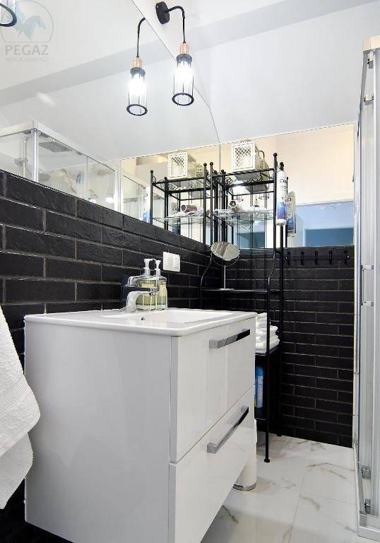 Ponieważ mieszkanie jest bardzo wysokie, można się pokusić o dodanie antresoli. Podłogi - płytki drewnopodobne (panele winylowe). Woda - terma zabudowana w łazience. Zabudowa szaf, zmywarka.