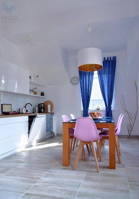 Mieszkanie znajduje się na 1 piętrze w 2-piętrowym domu. Jest w pełni i bardzo ładnie umeblowane, łącznie z wyposażoną kuchnią ze sprzętem AGD. Ogrzewanie podłogowe Dotąd było wynajmowane i doskonale nadaje się do dalszego wynajmu.