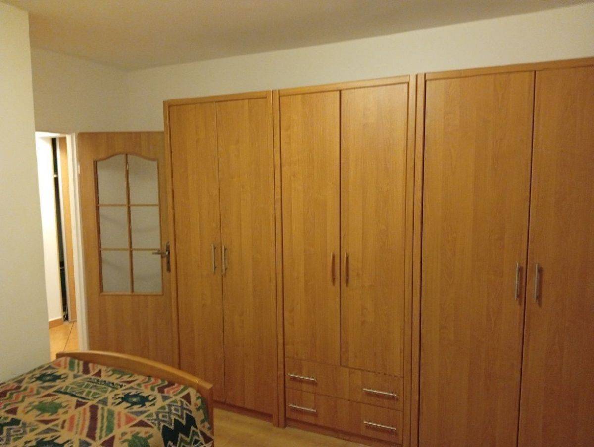 Pokoje w pełni umeblowane. W dużym pokoju rozkładana sofa, stół i krzesła, meblościanka z szafą, witryna, etc. W mniejszym pokoju jedno łóżko (mogą być dwa) z porządnymi materacami, szafy, stolik, TV.