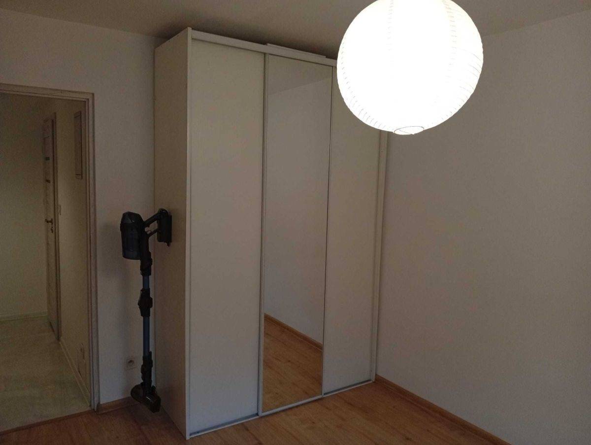 W większym pokoju narożnik, stół i krzesła, regał i komoda oraz wbudowana szafa. W mniejszym pokoju duża trzydrzwiowa szafa z lustrem i miejsce na łóżko lub wersalkę. W przedpokoju szafa i szafki gospodarcze.