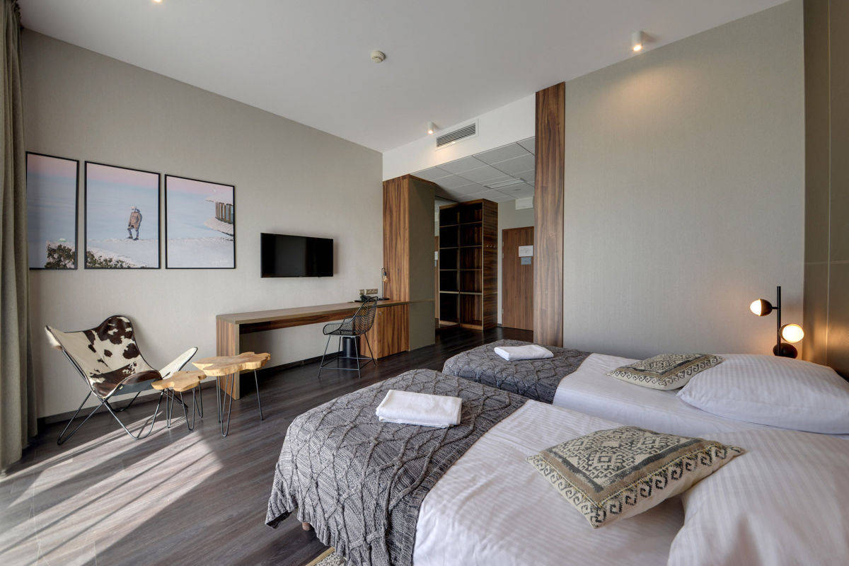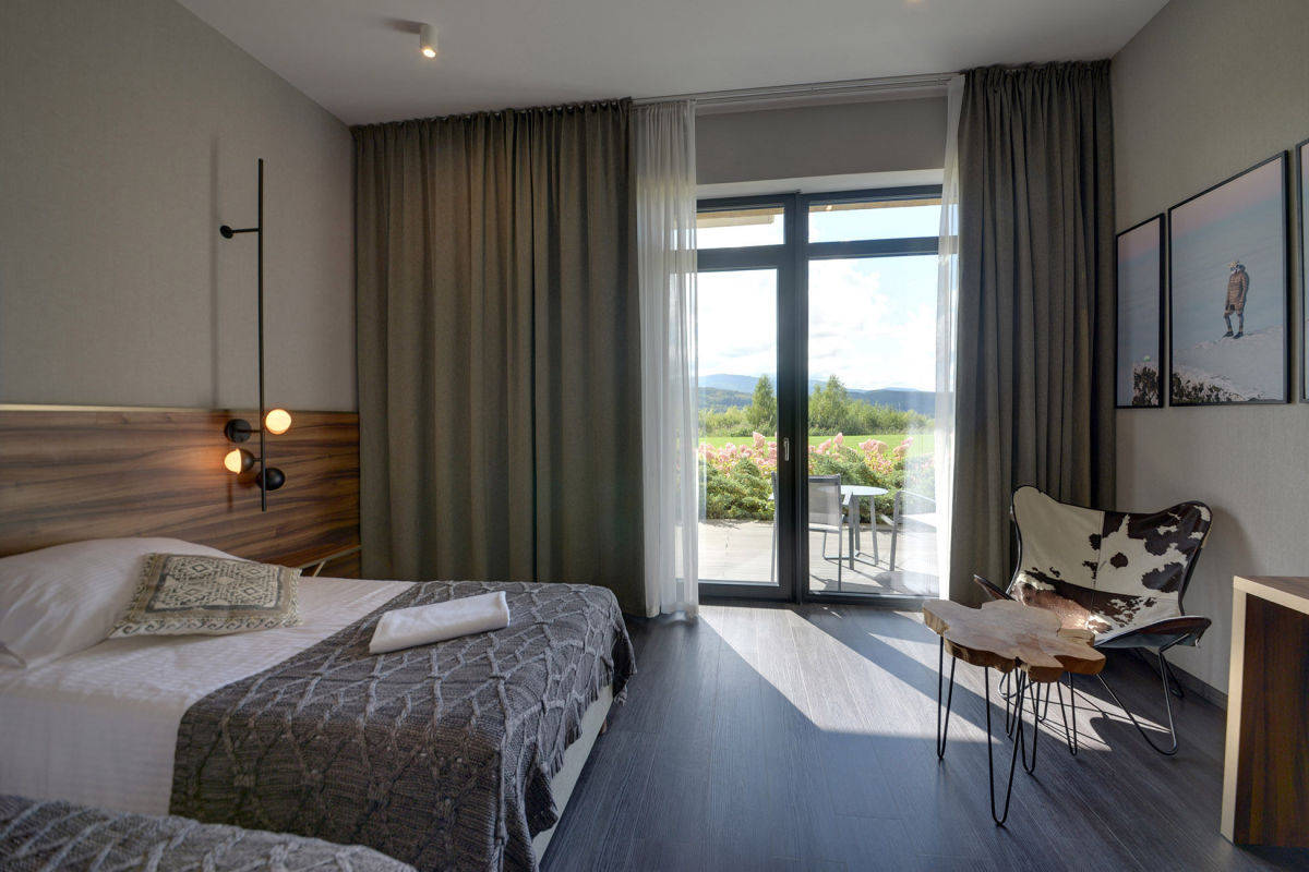 Ten elegancki apartament hotelowy o powierzchni 28,63m² składa się z przestronnego pokoju oraz stylowej łazienki, zaprojektowanych z najwyższą dbałością o detale. Do nieruchomości przynależy duży taras, z którego rozpościera się zachwycający widok na malowniczy zalew i góry - idealne miejsce na poranną kawę czy wieczorny relaks, ciesząc się piękną panoramą.