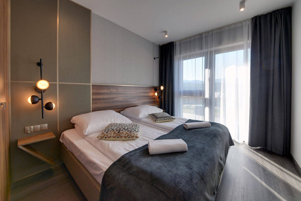 Ten atrakcyjny apartament opowierzchni 38,63 m² składa się z komfortowej sypialni, przestronnego pokoju dziennego z aneksem kuchennym oraz eleganckiej łazienki. Do nieruchomości przynależy duży balkon, z którego rozpościera się zachwycający widok na zalew oraz góry - idealne miejsce na poranną kawę lub wieczorny relaks.