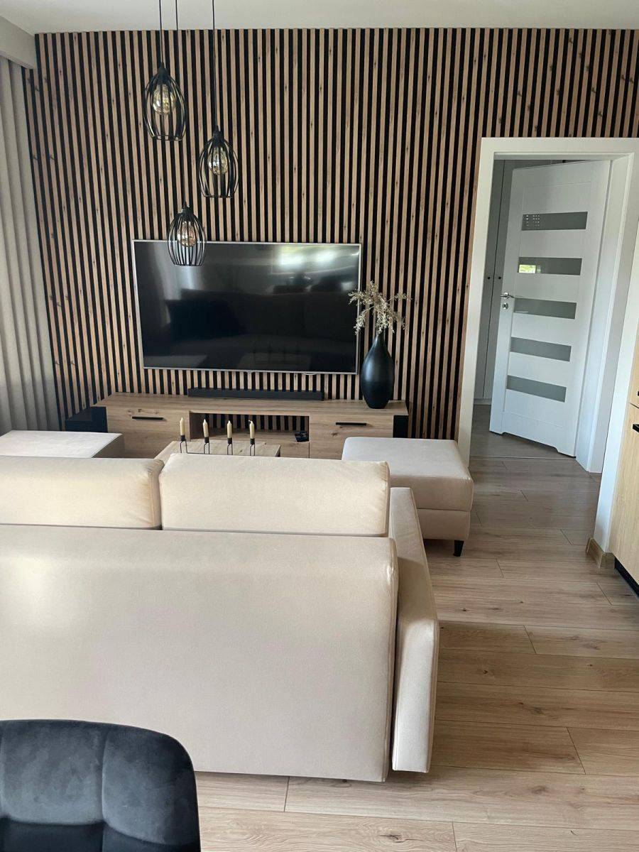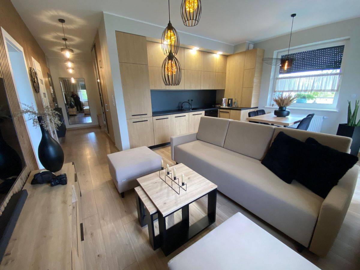 z mikrofalą Samsung , zmywarkę i pochłaniacz. Salon oraz pokoje wyposażone są w meble, które są wliczone w cenę.