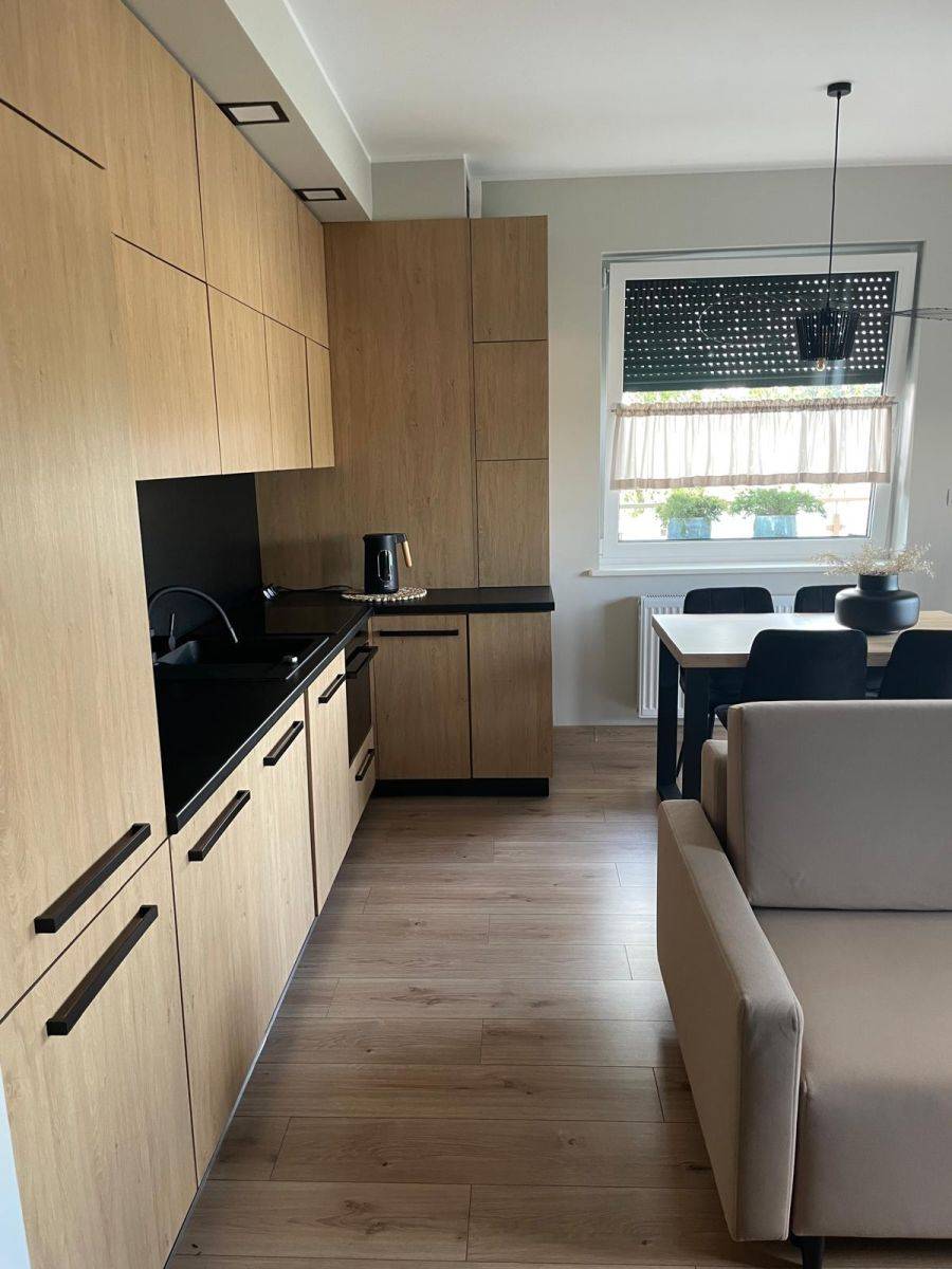 Mieszkanie jest wykończone i zamieszkałe od 06.2024 w . Aneks kuchenny wyposażony jest w meble kuchenne oraz sprzęty w zabudowie - lodówkę firmy Samsung, płytę indukcyjną Samsung ,piekarnik