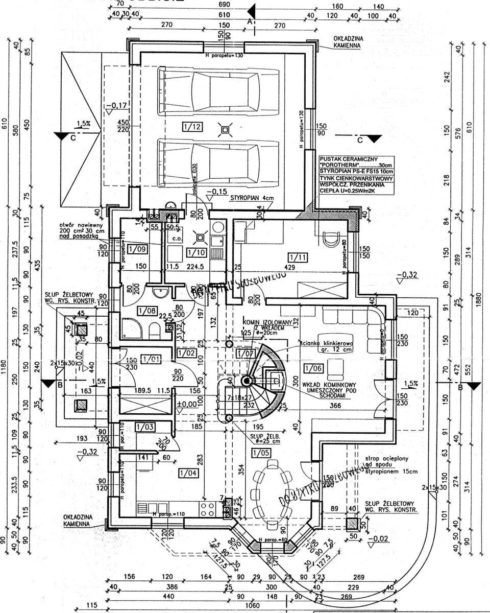 Główne drzwi do budynku to drzwi producenta Euronord, antywłamaniowe, stalowe i z kompozytu poliestrowo-szklanego w domu podwójny garaż z kanałem najazdowym jest wzmocniony chudziak z prętami zbrojeniowymi posadzka przygotowana na podnośnik do auta .