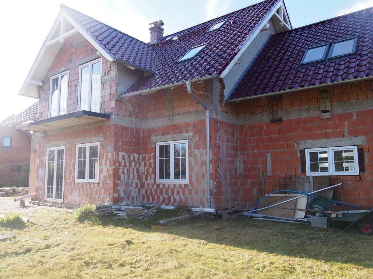 Budynek piętrowy częściowo podpiwniczony budowany w technologi tradycyjnej : ściany cegła porotherm max , powierzchnia podług to 290 m2, poszycie dachu dachówka ceramiczna .Jest zamontowany kominek firmy Jotul, komin wolnostojący firmy Schiedel, 14 okien dachowych Velux powlekanych PCV , trzy świetliki. Pozostałe okna i drzwi tarasowe firmy Drutex.