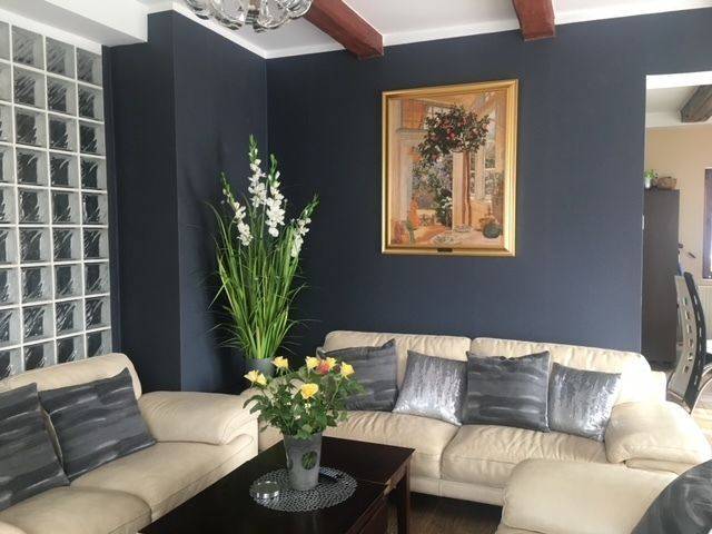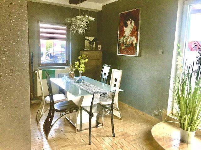 - Na parterze znajduje się jasny salon połączony z kuchnią i jadalnią, tworząc przyjemną przestrzeń do wspólnego spędzania czasu.