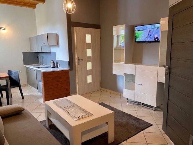 - Trzech apartamentów z aneksem kuchennym, łazienką i sypialnią, gwarantujących wygodę i prywatność,