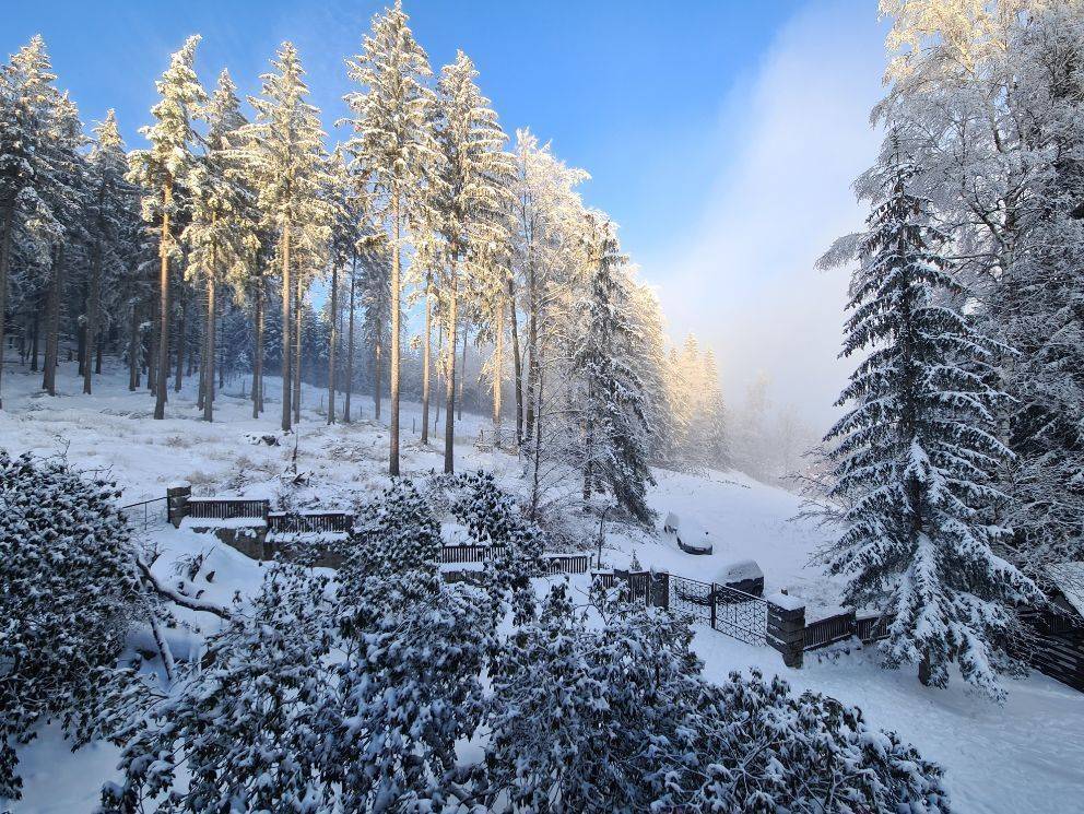 Nieruchomość położona jest na malowniczej, leśnej działce, otoczona 100-letnimi rododendronami, świerkami i cisami. Cały teren jest ogrodzony, co zapewnia prywatność i bezpieczeństwo. Wokół rozciąga się las, a cisza i spokój panują tu na co dzień. Do centrum miejscowości można dotrzeć pieszo w zaledwie 10 minut.
