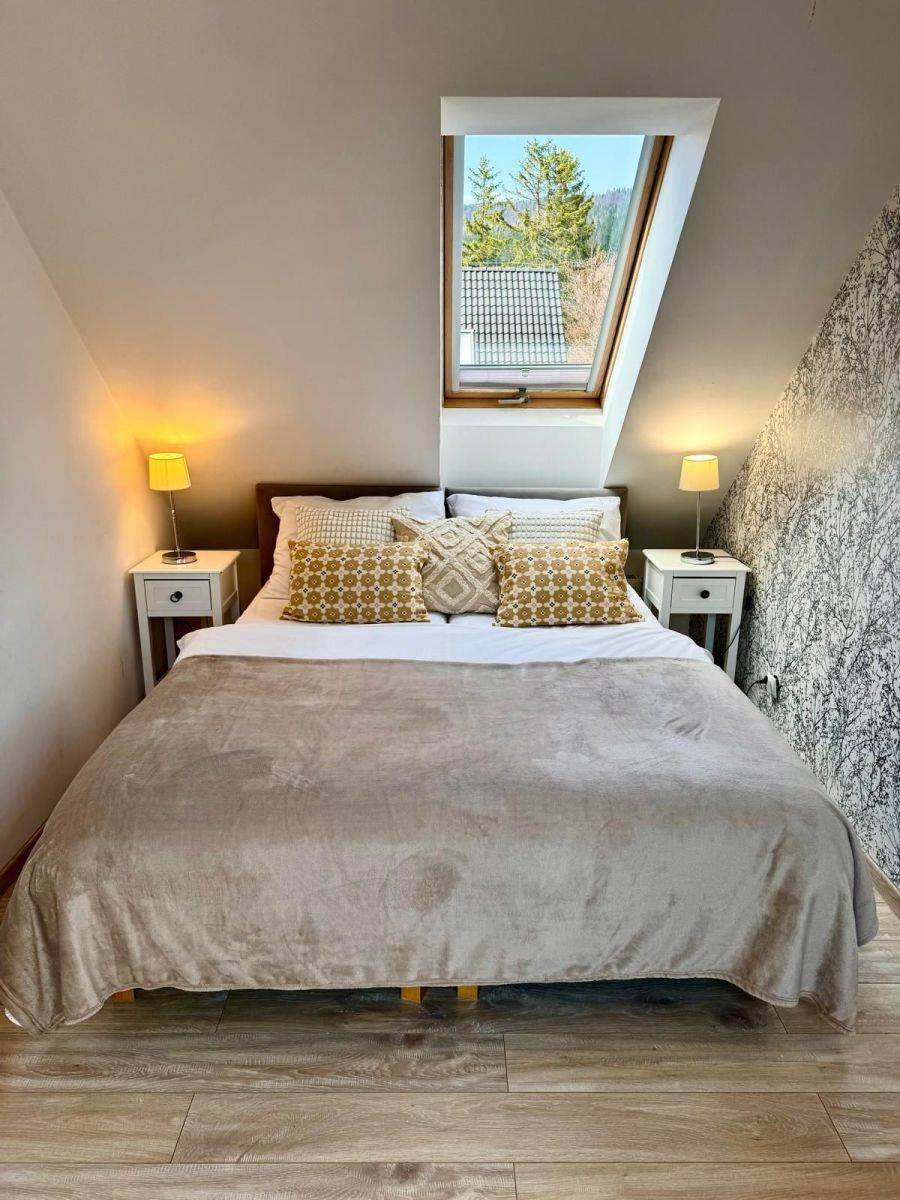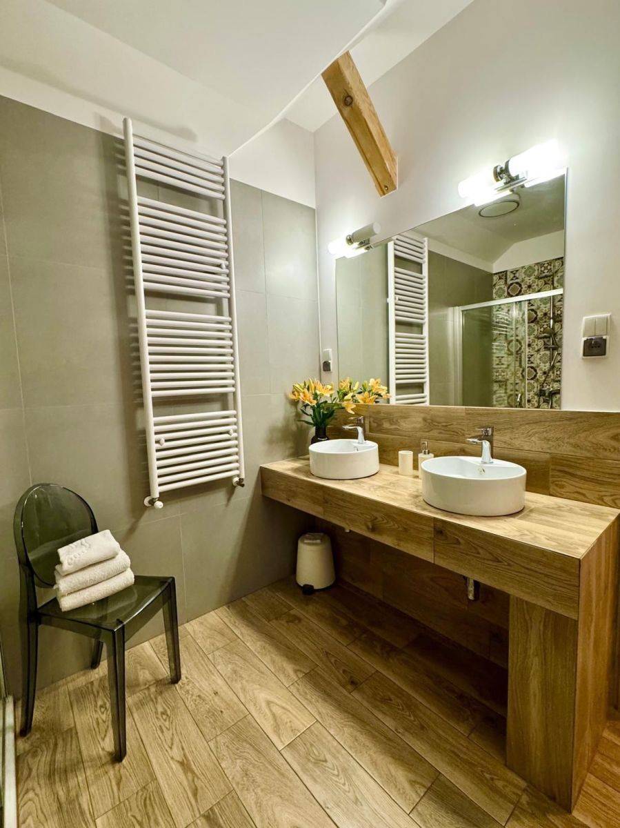 Na drugim poziomie czekają dwie komfortowe sypialnie, które zapewniają prywatność i miejsce do wypoczynku, a także kolejna łazienka i przedpokój, co czyni tę przestrzeń jeszcze bardziej funkcjonalną.