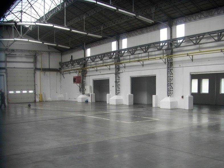Hala posiada posadzkę przemysłową bezpyłową, jest dobrze doświetlona światłem naturalnym- w dachu świetliki, dostęp do hali z bramy z poziomu 0 ( 4,5m x 3,7m ) .