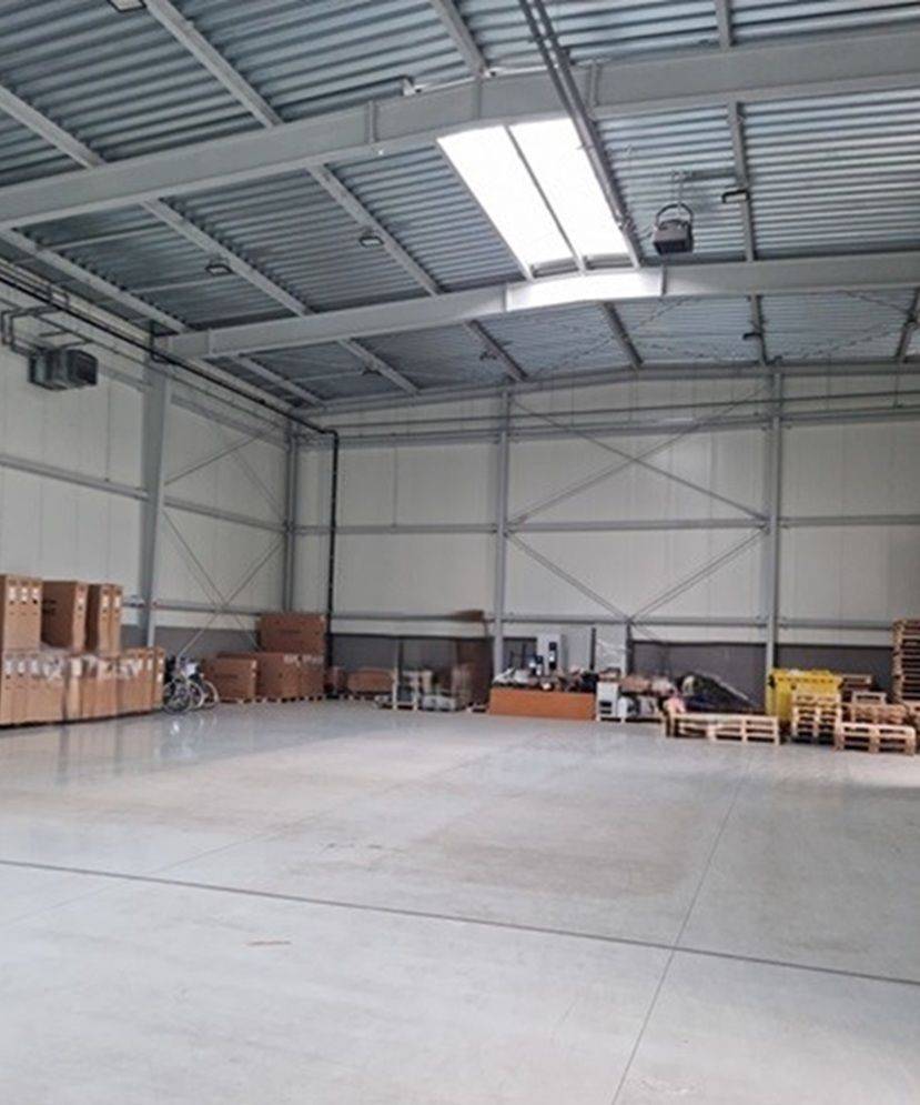 - hala o pow. 1100m2 - dostępna z 2 bram z poziomu 0 oraz z 2 doków, ogrzewana gazowo, wysoka 7-8m,