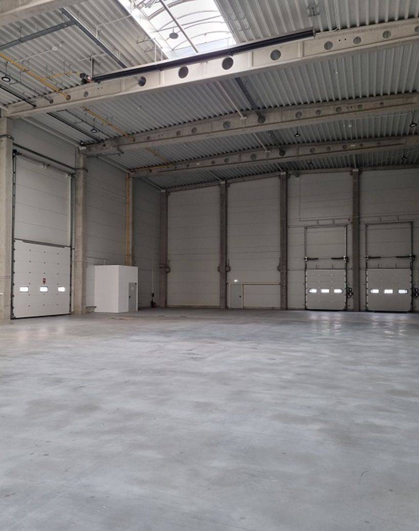 Hala - wybudowana jest z płyty warstwowej, posiada konstrukcję stalową, wysokość 10,5m, 2 doki + 1 brama z poziomu 0, posadzkę przemysłową bezpyłową, ogrzewanie gazowe.