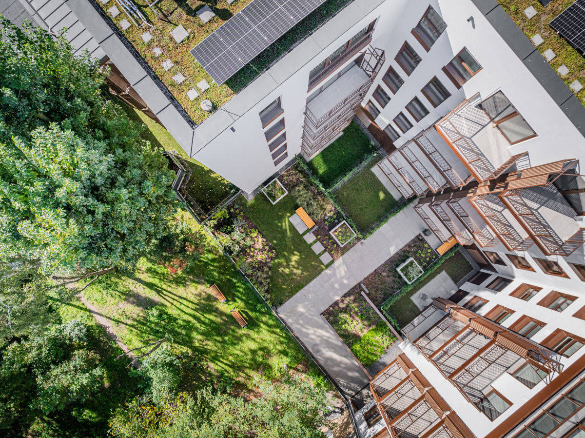 - zielony dach z instalacją fotowoltaiczną