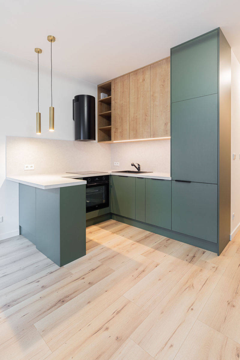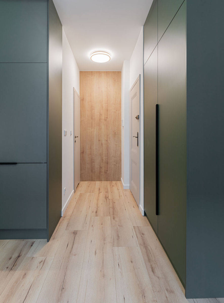 Apartament został zaprojektowany z dbałością o każdy detal. Zabudowy wykonane na wymiar przez stolarza, wysokiej jakości materiały wykończeniowe oraz przemyślana ergonomia tworzą spójną, nowoczesną przestrzeń.