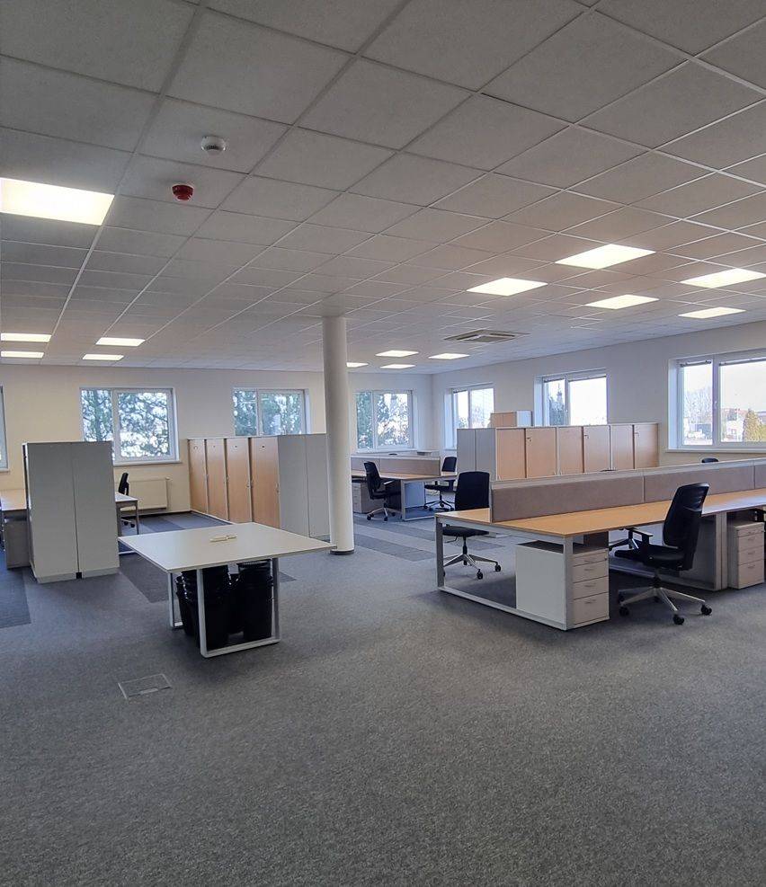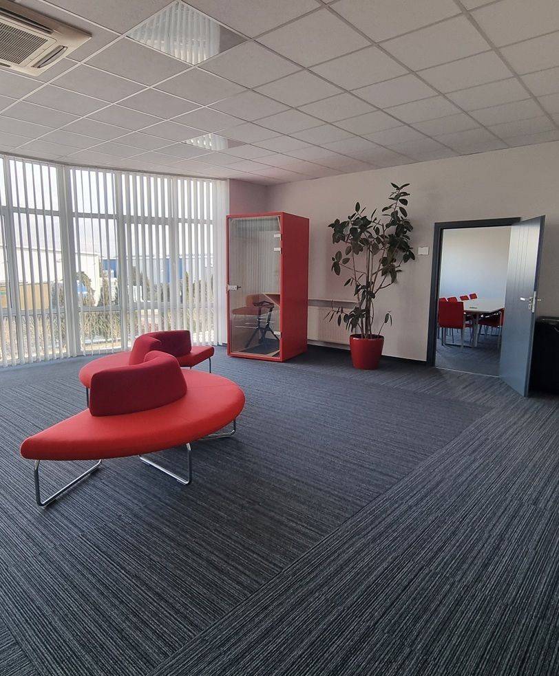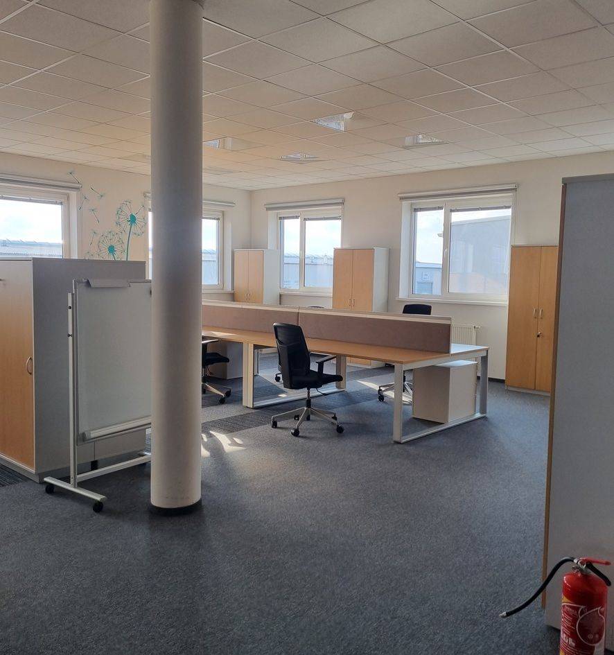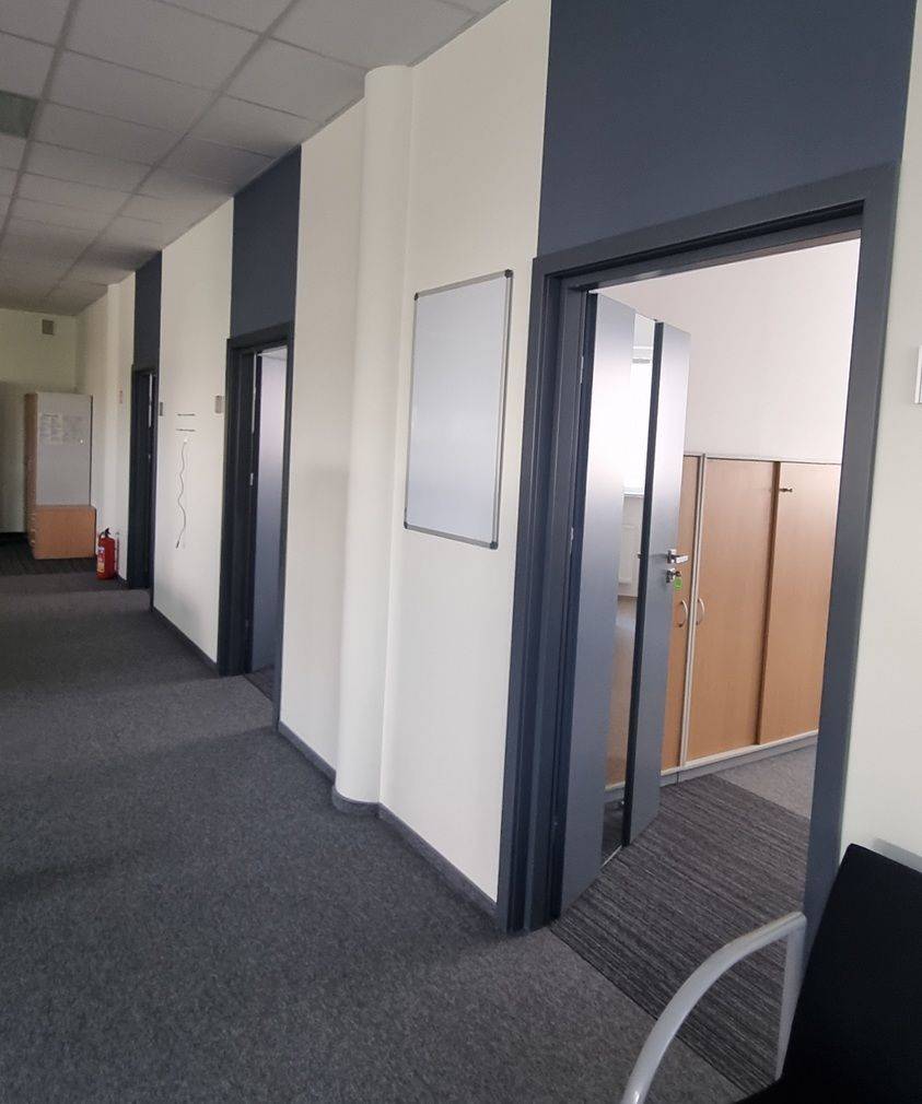 Przy hali znajduje się murowany biurowiec, wykończony w bardzo dobrym standardzie. Pomieszczenia biurowo-socjalne są klimatyzowane. Istnieje możliwość wynajęcia pomieszczeń biurowych umeblowanych ( w bardzo dobrym standardzie )