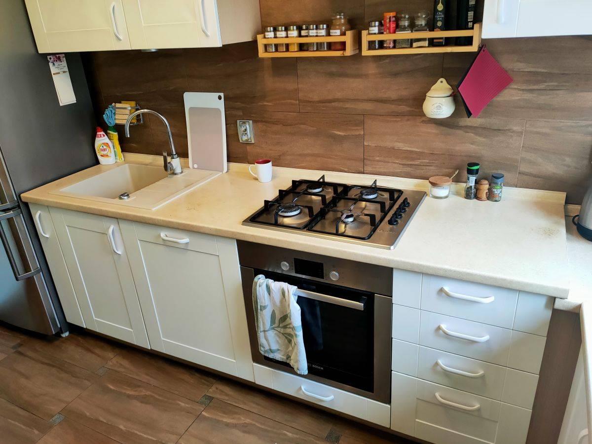 W cenę wliczone meble w kuchni i sprzęt AGD (zmywarka, lodówka, piekarnik elektryczny, kuchnia gazowa) oraz szafy w zabudowie w przedpokoju i w sypialni.