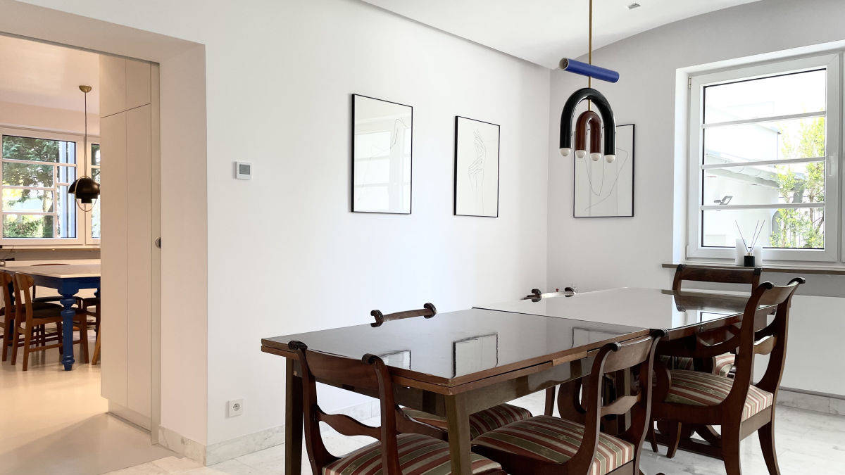 - Parter to przestrzeń otwarta, obejmująca kuchnię z nowoczesnymi meblami na wymiar, elegancką jadalnię i duży salon z wyjściem bezpośrednio do ogrodu - doskonałe do codziennych chwil i spotkań z rodziną i przyjaciółmi.