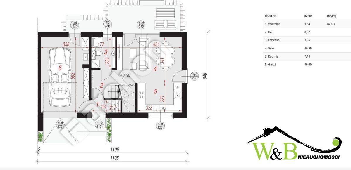 - na parterze salon połączony z kuchnią i jadalnią, łazienka z prysznicem, wiatrołap, garaż