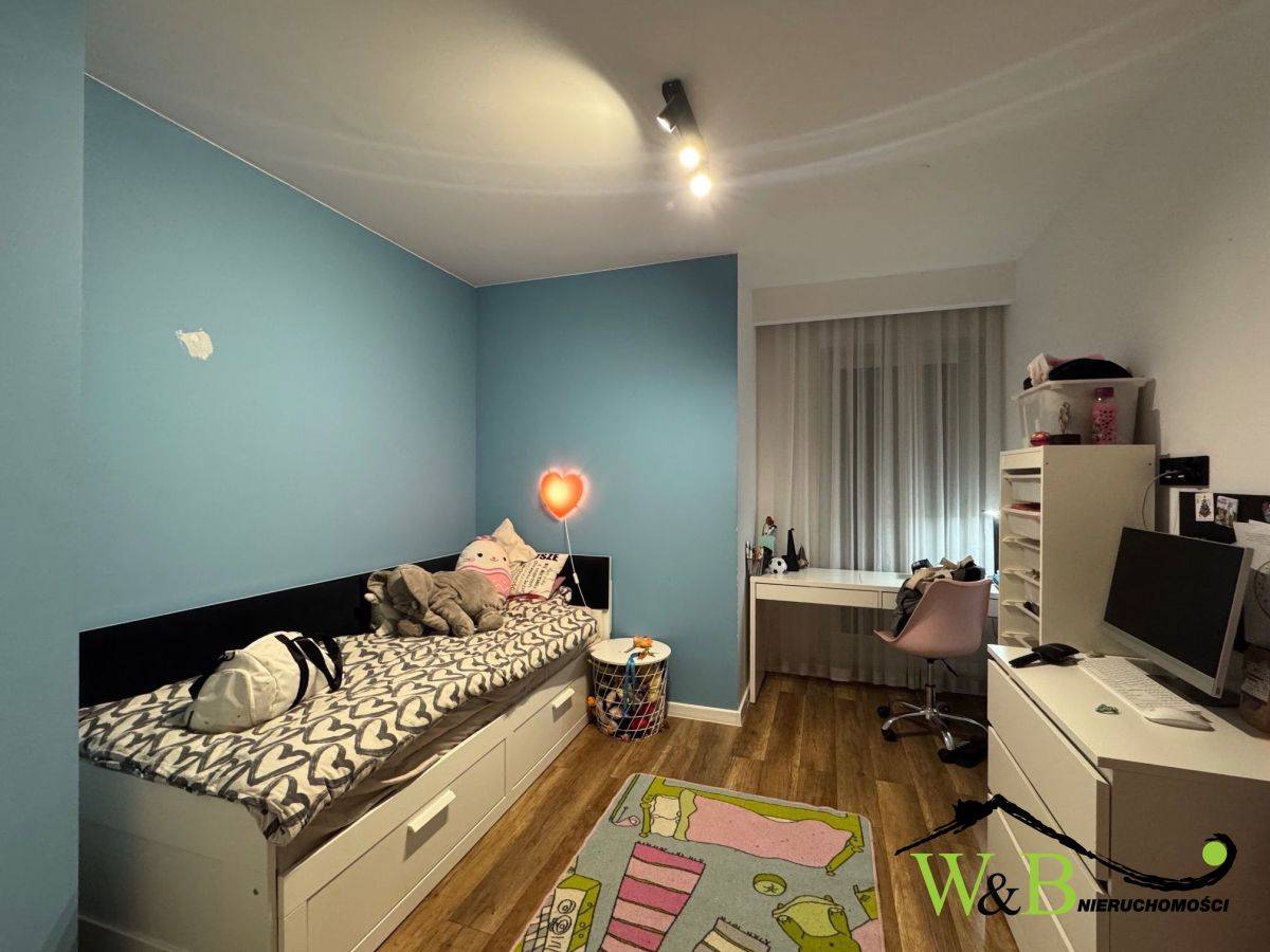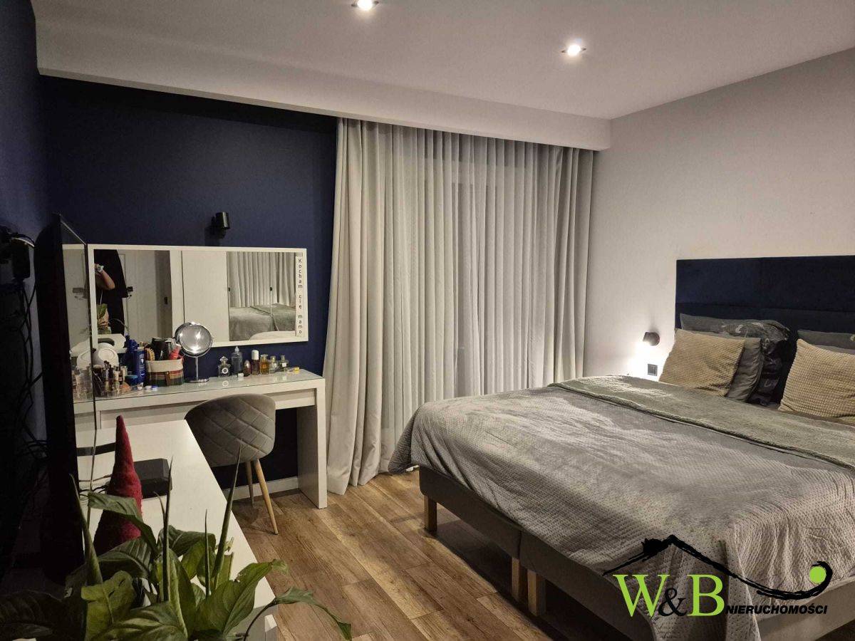 - 4 pełnowymiarowe sypialni. Główna sypialnia wyposażona w zabudowaną szafę
