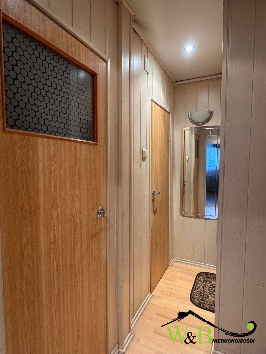 Wnętrze tego mieszkania składa się z przedpokoju, salonu połączonego z jadalnią , odrębnej kuchni z oknem, 2 sypialni, łazienki z wanną, odrębnego wc. Do lokalu przynależy piwnica.