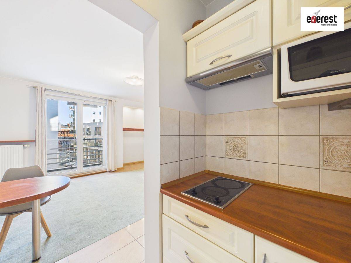 Mieszkanie jasne, w neutralnych kolorach. Aneks kuchenny w zabudowie, łazienka w płytkach z kabiną prysznicową. Sprzedaż z kompletem mebli i AGD (zgodnie ze zdjęciami) - idealne rozwiązanie dla osób, które cenią wygodę i brak dodatkowych kosztów na start.