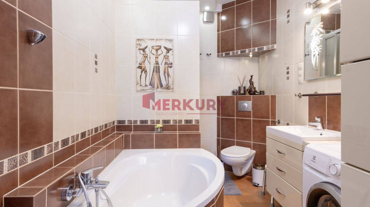 - Łazienka z wanną i prysznicem, nowa pralka Electrolux (2025)