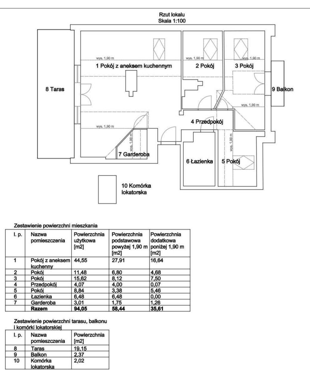 - Całkowita powierzchnia mieszkania: 94 m²