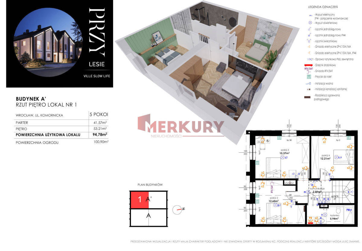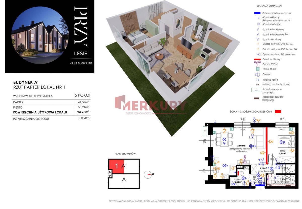 przyziemia: salon z kuchnią i wyjściem na ogród,sypialnia, łazienka, pomieszczenie gospodarcze,