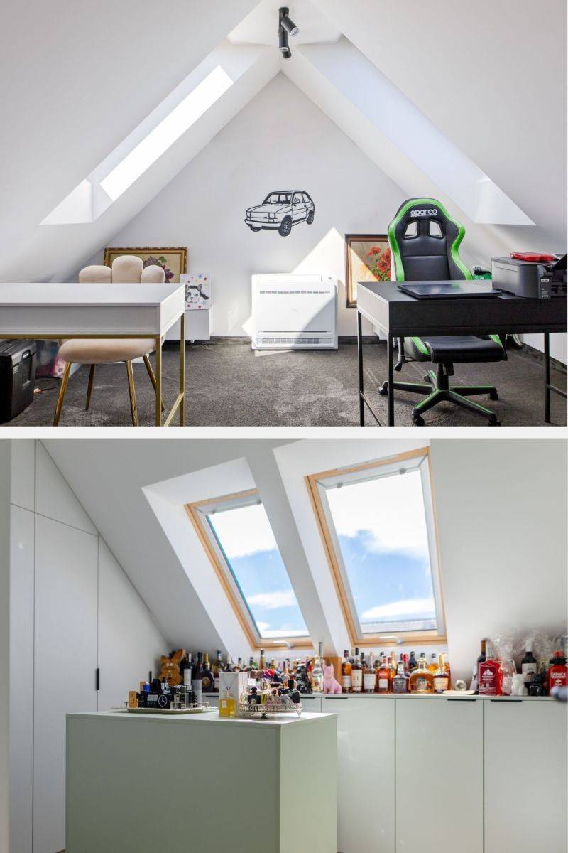 Otwarta przestrzeń typu open-space , obecnie zaaranżowana jako miejsce do pracy. Idealna dla osób na Home Office lub jako strefa hobby.