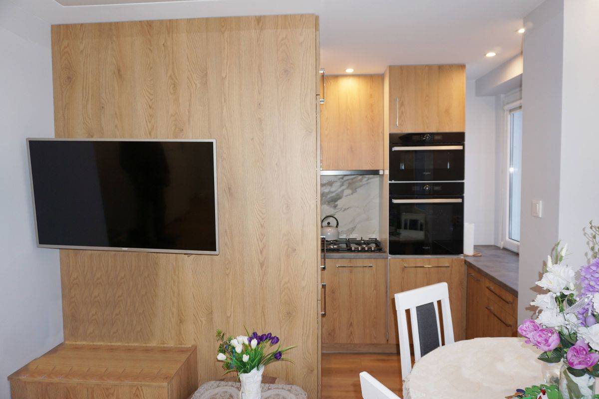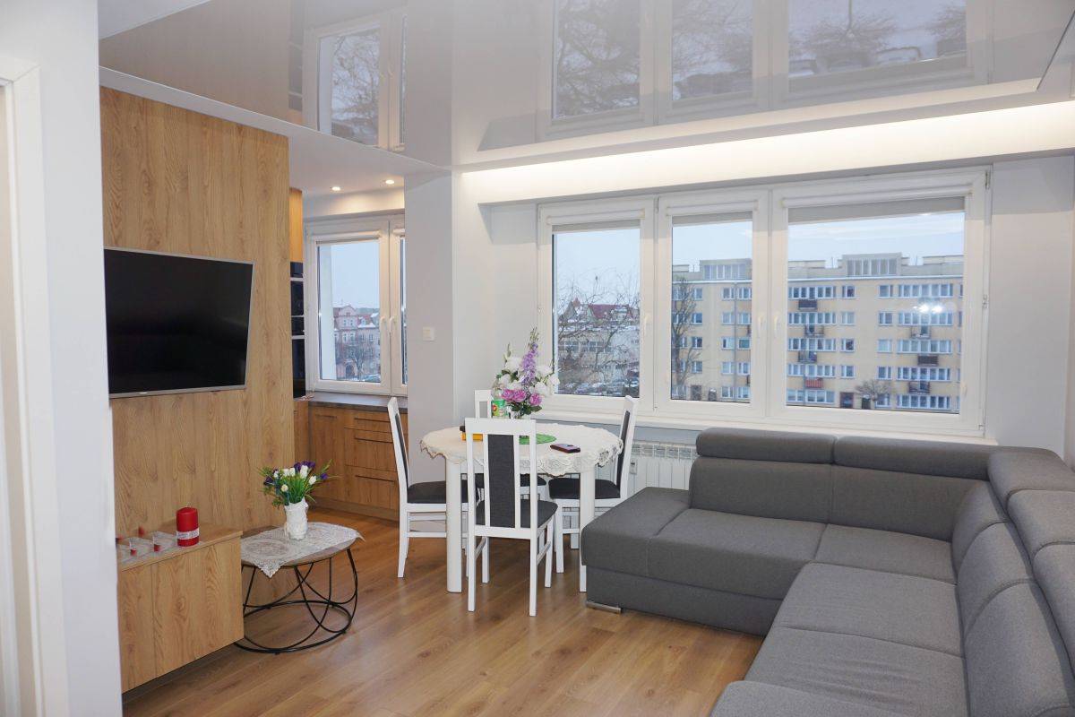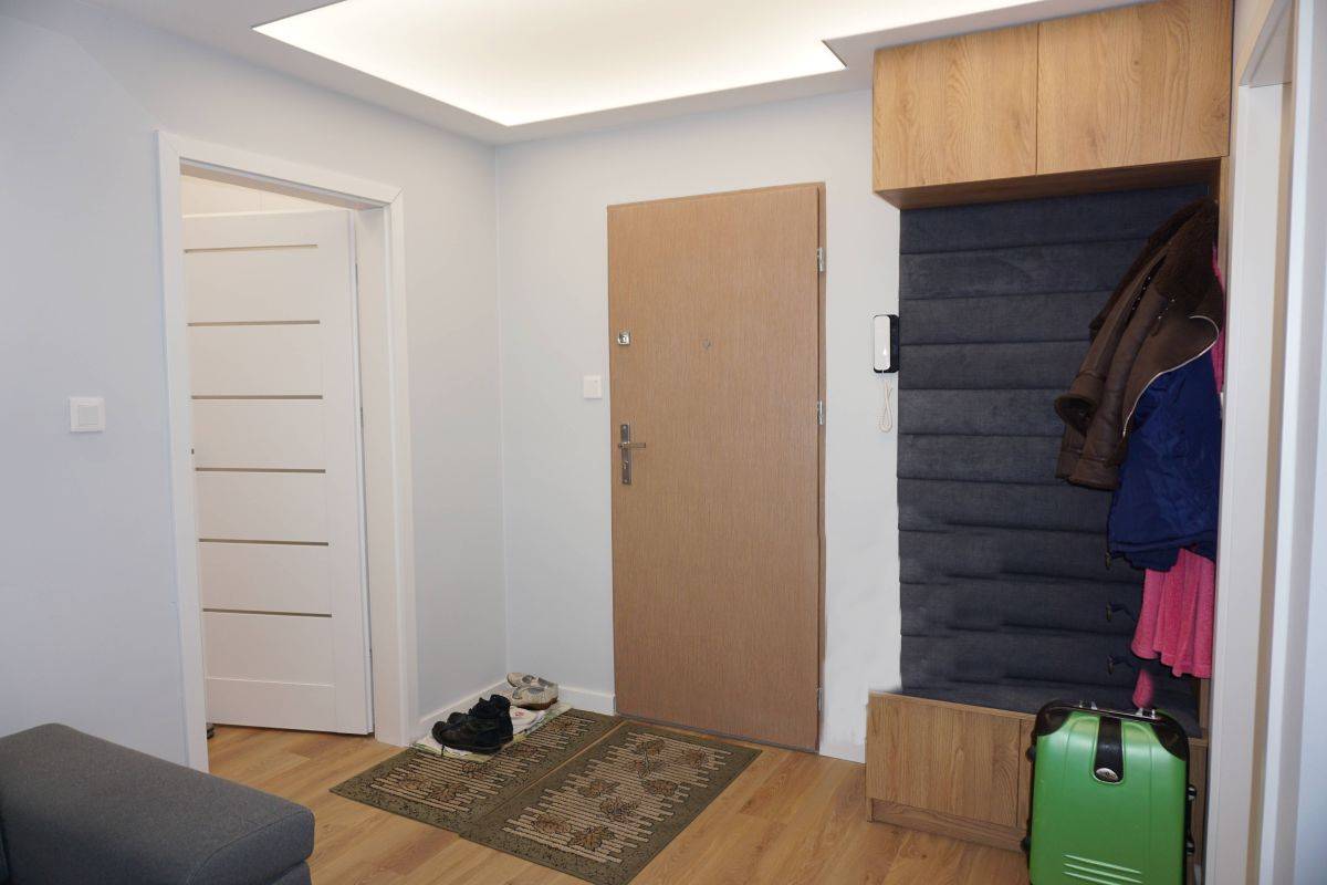 Mieszkanie w pełni wyposażone i umeblowane - w pokoju duża rozkładana sofa, stolik i telewizor. W sypialni łózko i szafa w zabudowie. W kuchni meble wraz ze sprzętami. W przedpokoju szafka na kurtki i buty.
