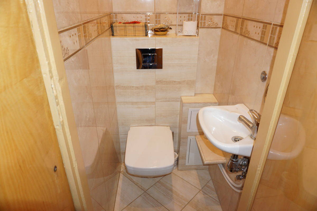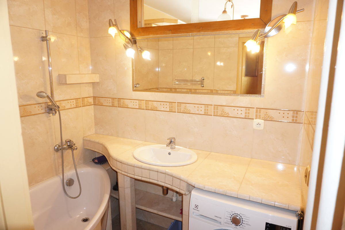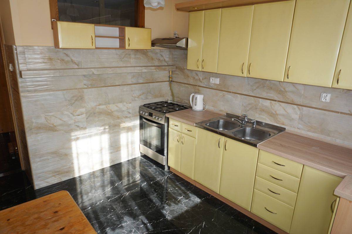 Ściany i sufity gładzie, podłogi - parkiet w b.dobrym stanie. Łazienka w płytkach z wanną i pralką. Wc w płytkach. Kuchnia z oknem w pełni umeblowana i wyposażona w nową kuchenkę z piekarnikiem.