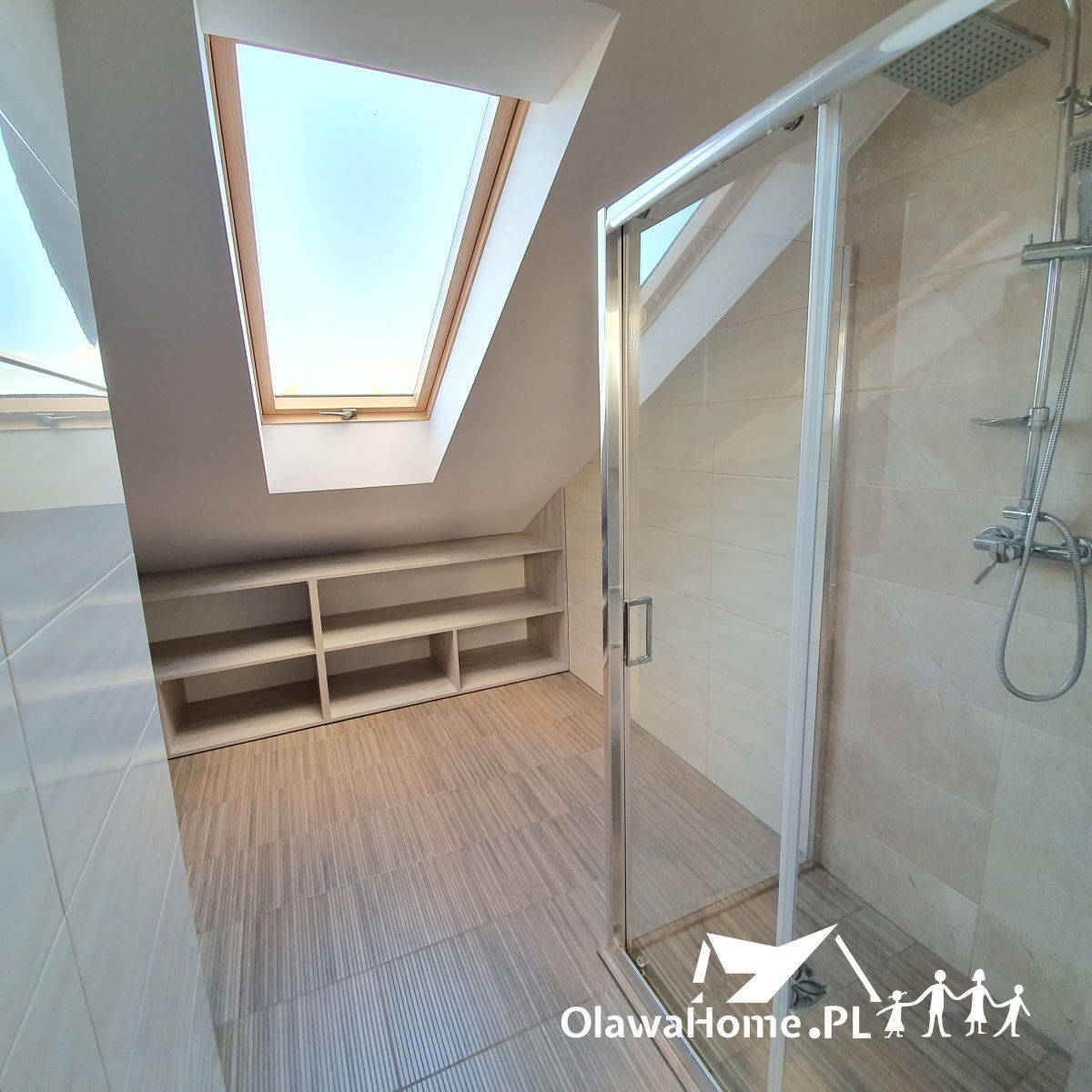 Na pierwszym poziome znajduje się przestronny salon z aneksem kuchennym i wyjściem na balkon, łazienka oraz hol. Na piętrze duża jasna antresola pełniąca funkcję sypialni z dodatkową łazienką.