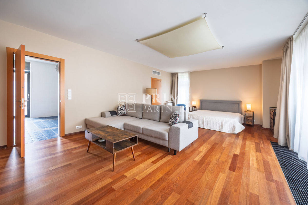 - Strefa relaksu z basenem, łazienką oraz sauną, tworząca idealne miejsce do wypoczynku,