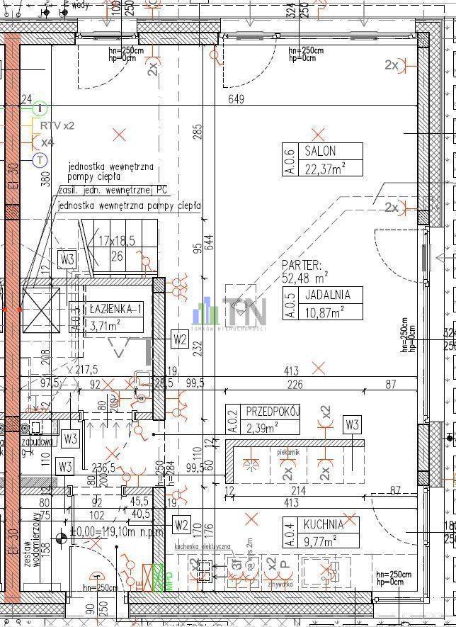 - wykonanie inst. elektrycznej, antenowej i internetowej wg projektu (bez osprzętu - gniazdek, włączników)