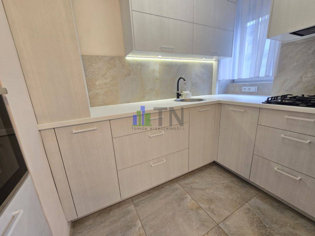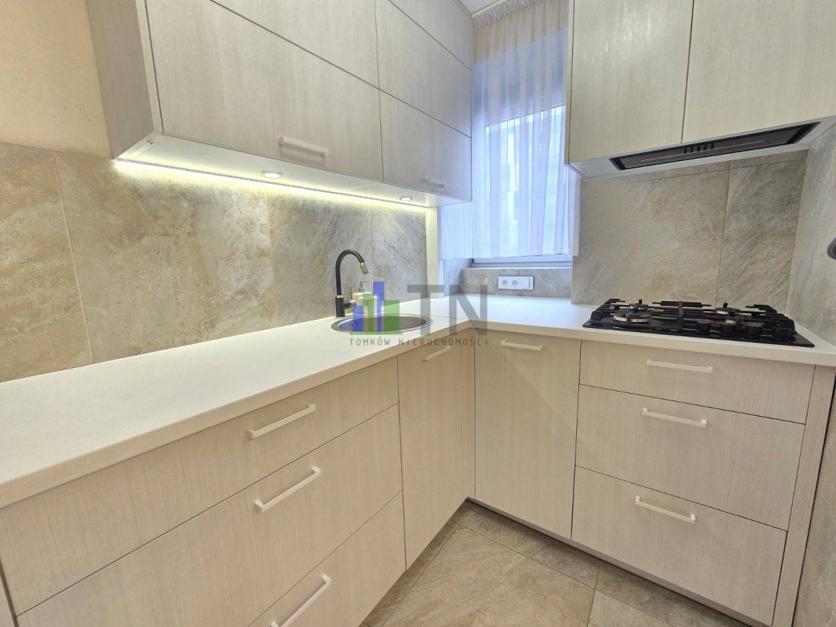 W kuchni meble w zabudowie wraz z nowym sprzętem AGD - lodówka, płyta gazowa, piekarnik, zmywarka.