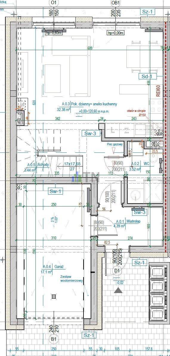 - pokój dzienny z aneksem kuchennym 32,38 mkw