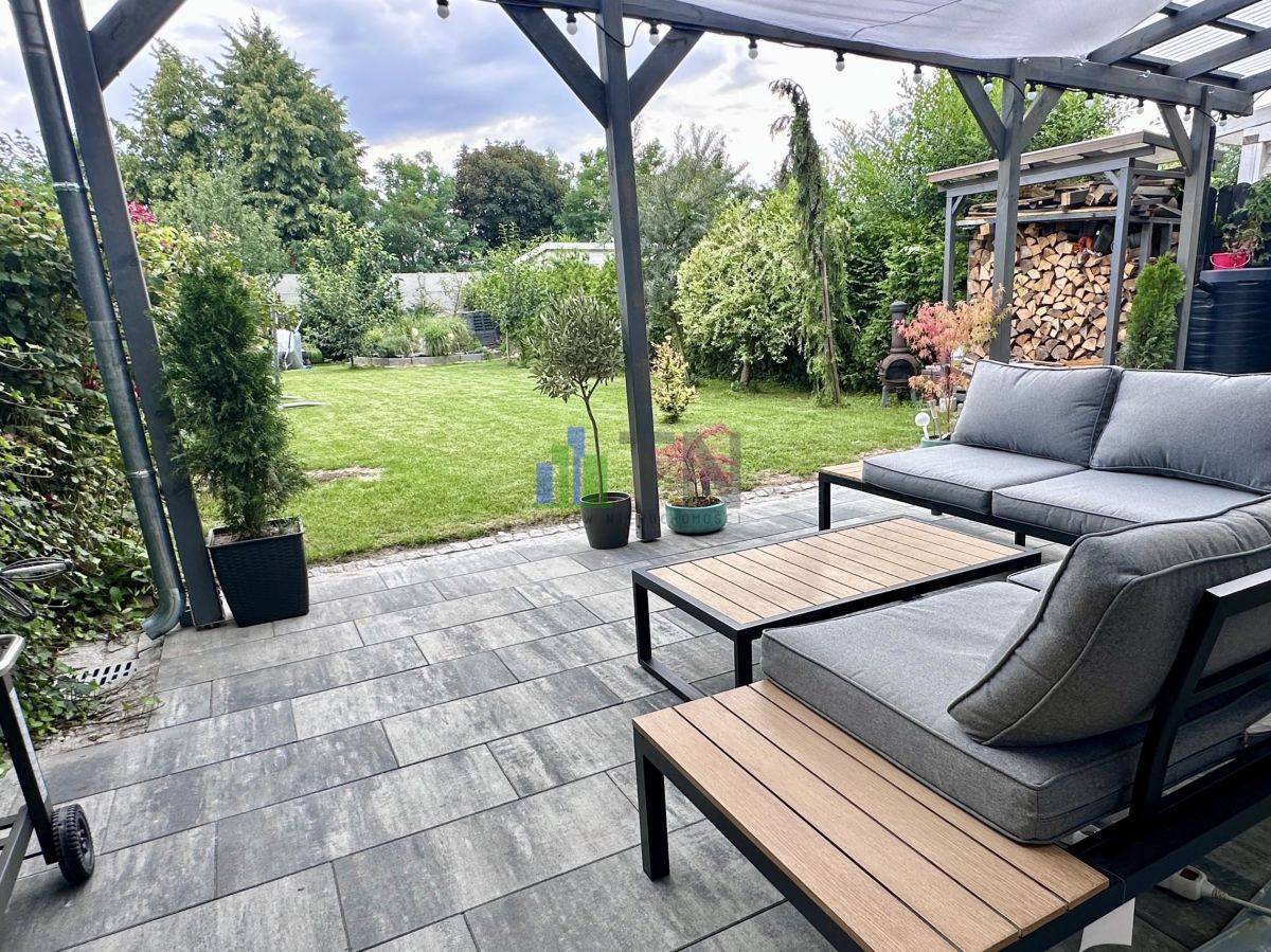 Działka ogrodzona i zagospodarowana. Podjazdy oraz wejście do lokalu z kostki brukowej. Taras o powierzchni 30 mkw wykonany z kostki brukowej, zadaszony.