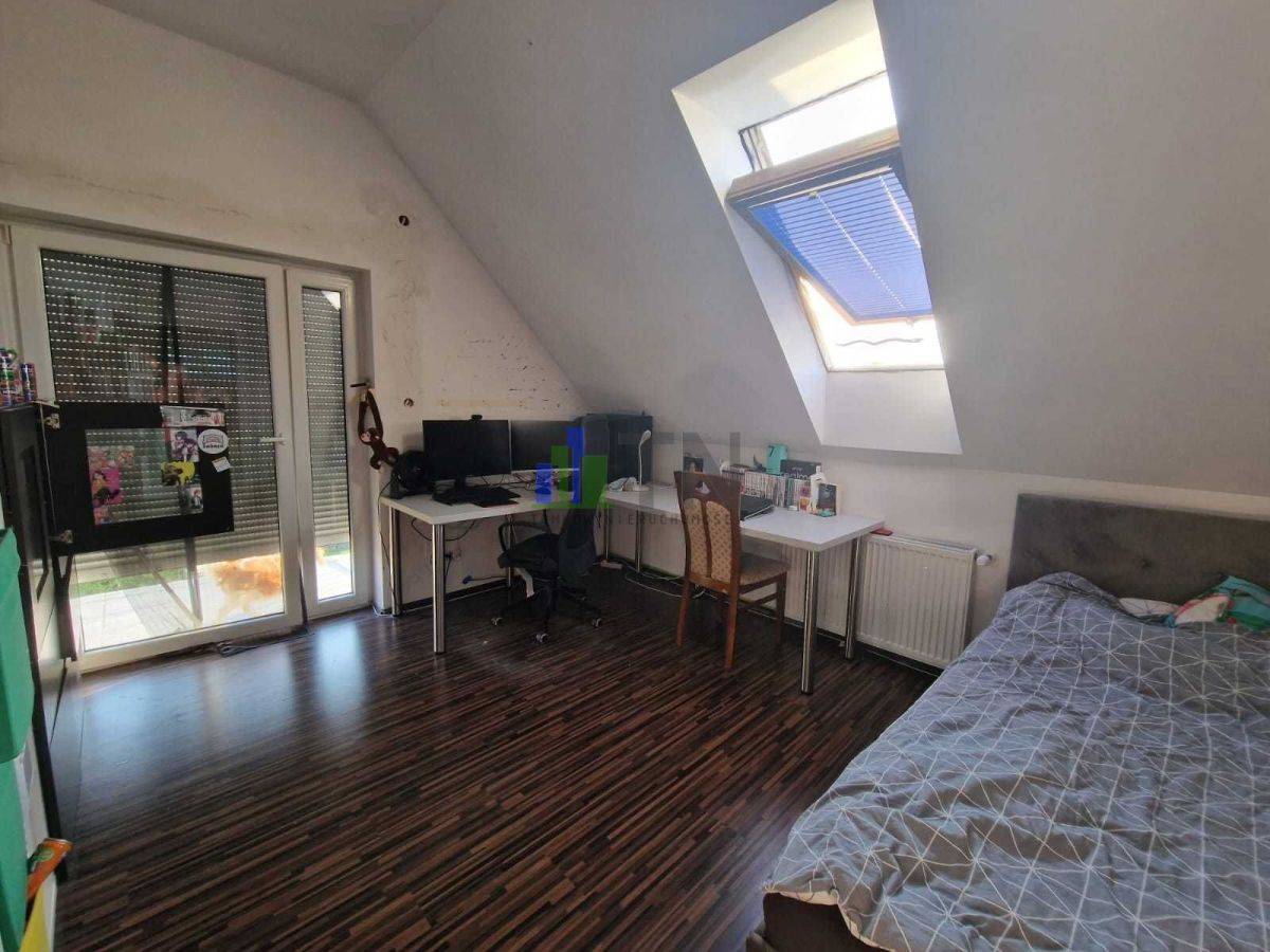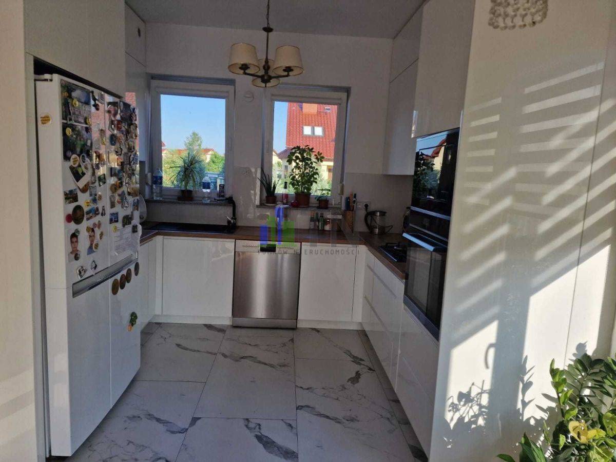 Na podłogach panele oraz kafle, ogrzewanie podłogowe w kuchni, salonie, przedpokoju oraz górnej łazience.