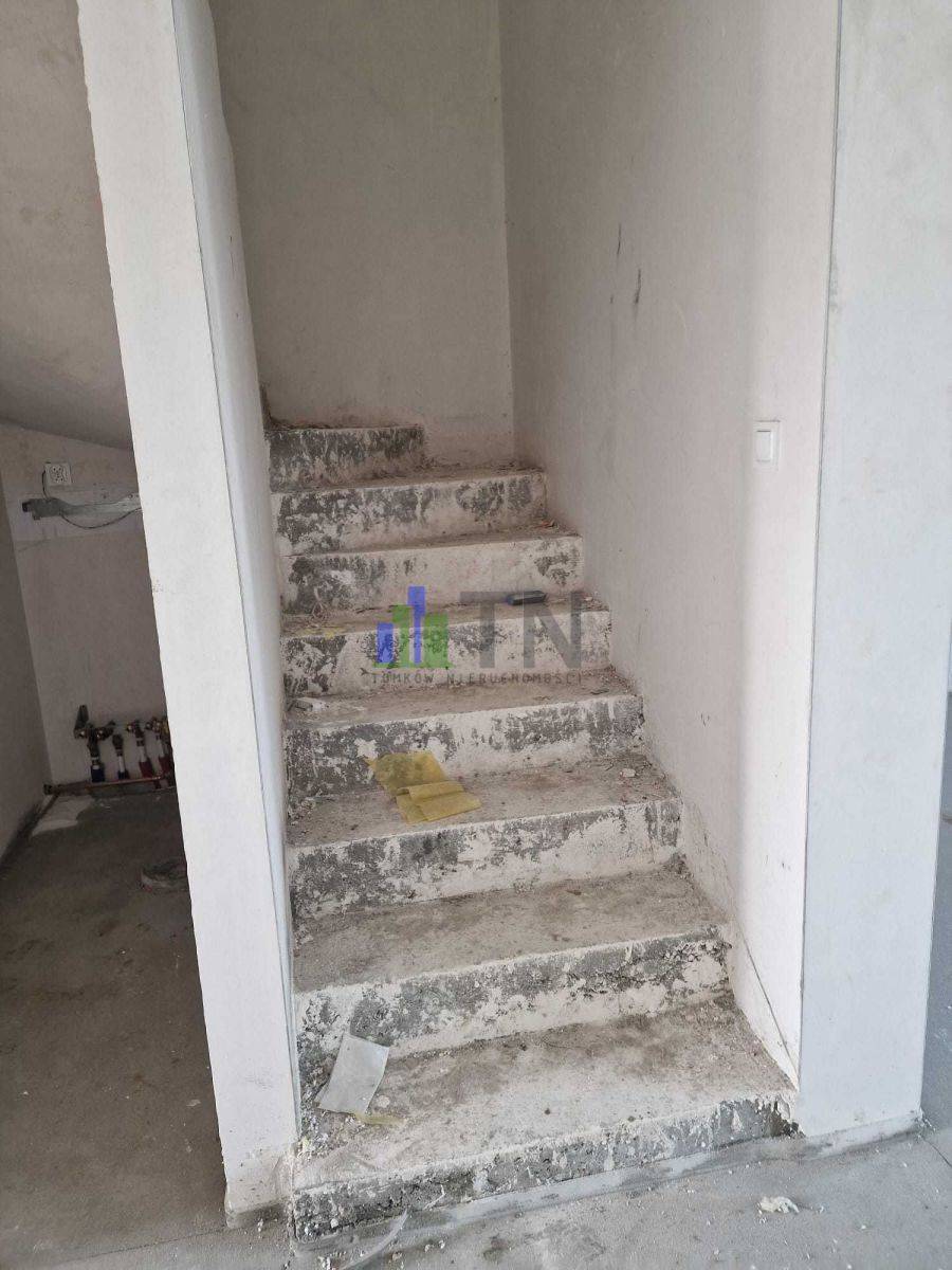 Instalacje elektryczne wraz z kontaktami i włącznikami LEGRAND NILOE, SIMON lub podobny o podobnych właściwościach, instalacje hydrauliczne - ogrzewanie gazowe podłogowe w całym budynku, tynki maszynowe kategorii III (Dolina Nidy) zagruntowane, posadzki mixokret, parapety wewnętrzne, zabudowa poddasza GK zagruntowana + ocieplenie wełną 20cm + 5 cm.