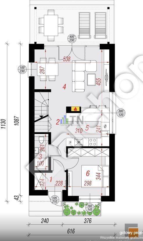 · 6. Dach konstrukcja drewniana, pokrycie dachówka betonowa płaska, rynny stalowe