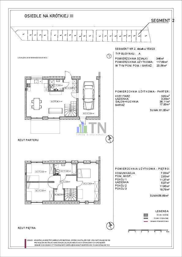 KORYTARZ - 3,62m²ŁAZIENKA - 3,34m²SALON+KUCHNIA - 36,11m²GARAŻ - 17,93m²