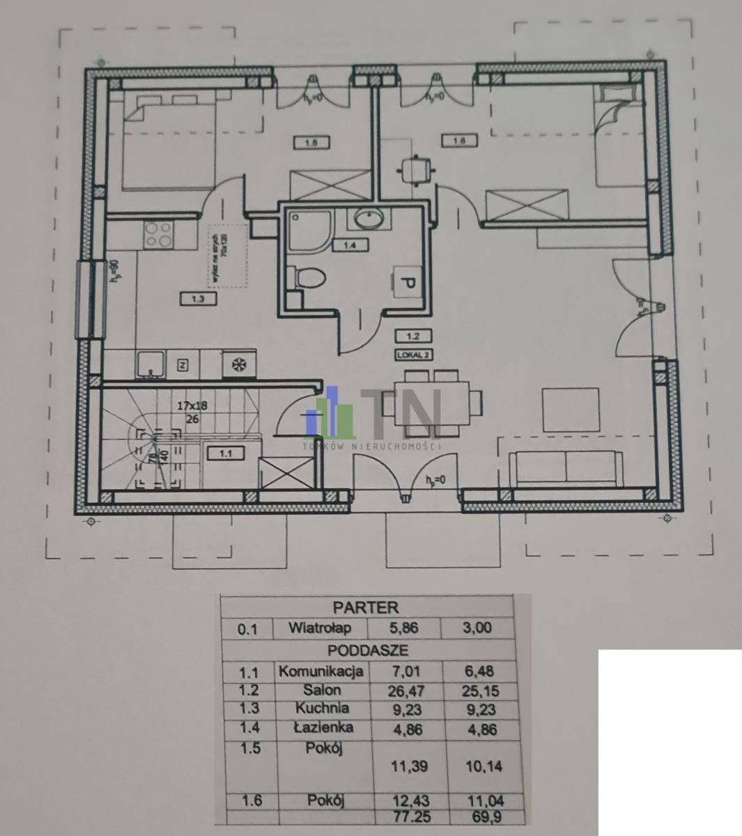 Lokal o pow 69,9 mkw składa się z